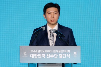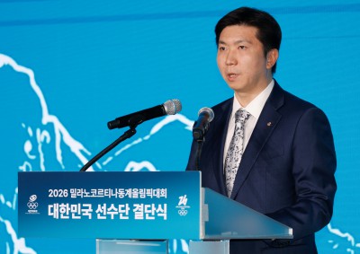 2026 밀라노 동계올림픽 결단식 개식사 하는 유승민 대한체육회장