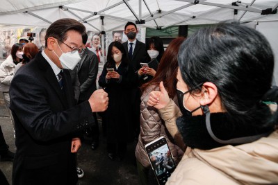 [영상] 이재명, 광화문서 사전투표..."촛불든 국민 생각해 반드시 승리할 것"