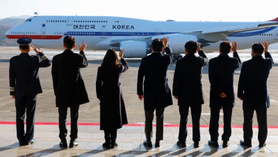 이재명 대통령 환송 인사하는 윤호중-우상호-정청래-강훈식