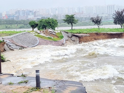 안동 용상동 낙천보 유실...출입통제시설 설치하는 안동시