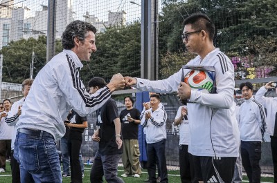 풋살 클리닉 참가자들 응원하는 아디다스코리아 마커스 모렌트 대표