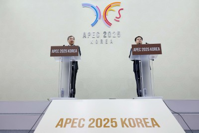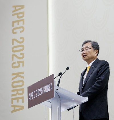 APEC 외교통상합동각료회의 기자회견 나선 조현 외교부 장관