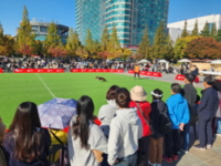 외국인 가족과 '2025 관악강감찬축제'에서 기념촬영하는 박준희 관악구청장
