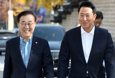 [영상] 윤호중·김동연 합당 오찬 회동 시작...'화기애애'