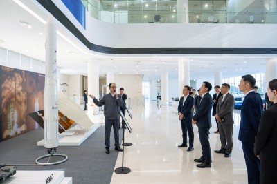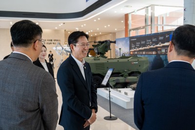한화에어로스페이스 연구개발 전시물 살펴보는 배경훈 부총리