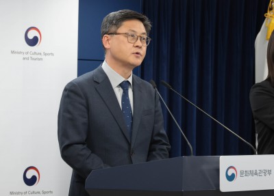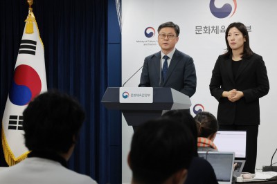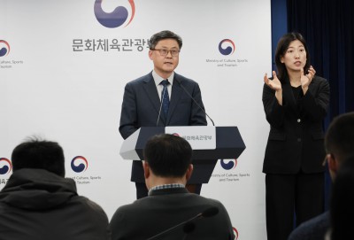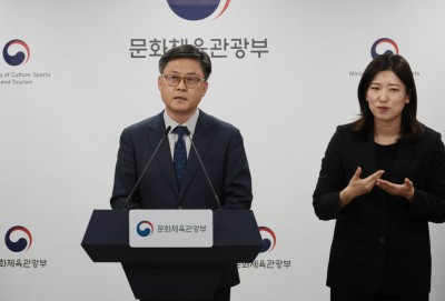 문체부 소속 공공기관 업무보고 사후 브리핑하는 김정훈 기조실장