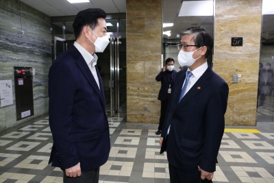 대화 나누는 김영춘 부산시장 예비후보-변창흠 국토부 장관