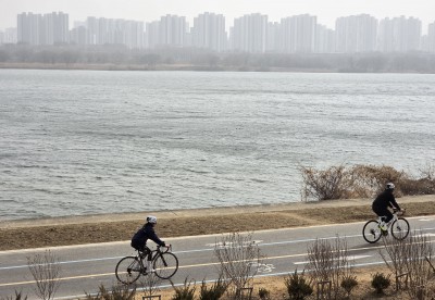 서울·경기·인천 미세먼지 주의보 발령... 뿌옇게 보이는 미사강변 일대