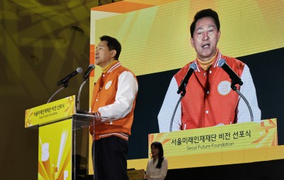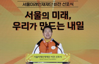 서울미래인재재단 비전선포식 박수 보내는 오세훈 서울시장