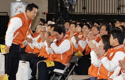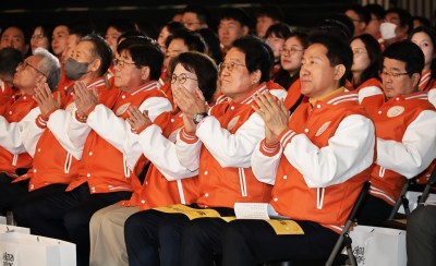 오세훈 서울시장 축사에 박수 보내는 서울미래인재재단 비전선포식 참석자들