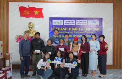 생필품 직접 전달하는 기획재정부 복권위원회 이용욱 사무처장과 행복공감봉사단 단장 박하선 배우