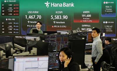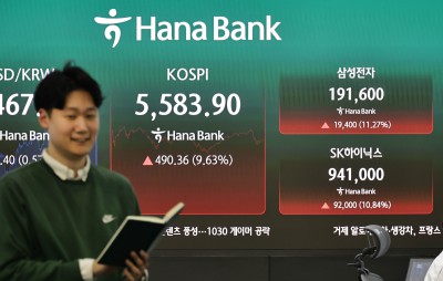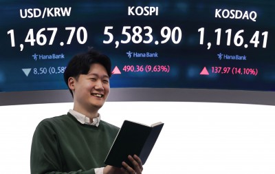코스피 9.63% 상승 5580선 복귀로 분주한 하나은행 딜링룸