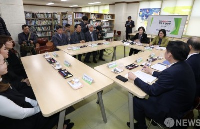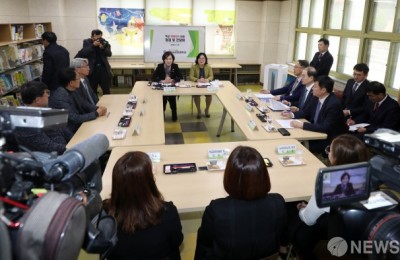 [사진] 학교 미세먼지 대응 간담회 참석한 유은혜 부총리