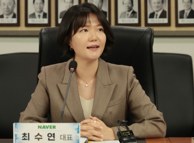 AI 에이전트 기반 공공서비스 혁신 업무협약식, 인사말하는 최수연 대표