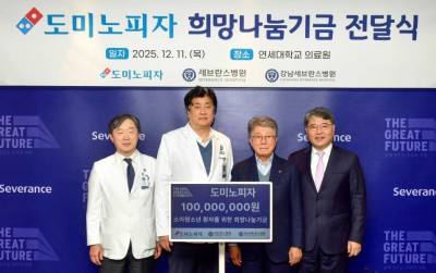 한국도미노피자, 세브란스병원과 강남세브란스병원에 1억원 전달