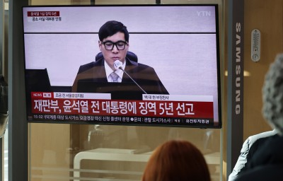윤석열 전 대통령 '체포방해' 1심 징역 5년 선고 시청하는 시민들