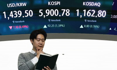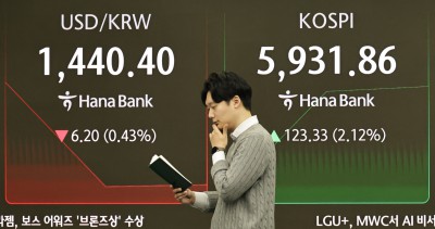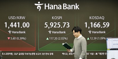코스피 5930선 돌파...달러/원 환율 1440원대로 하락