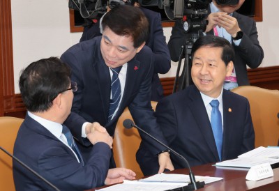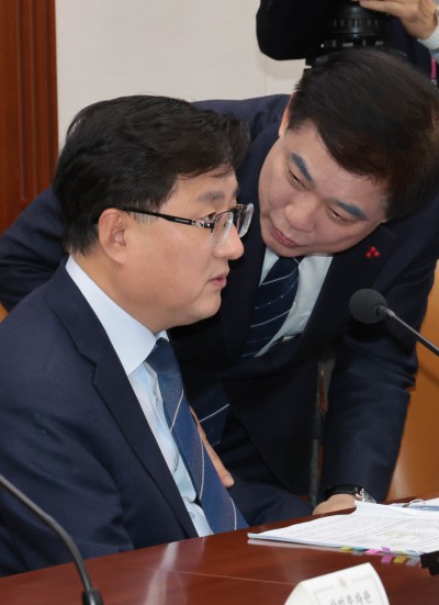 대화하는 김성환 기후에너지환경부 장관과 김병욱 청와대 정무비서관
