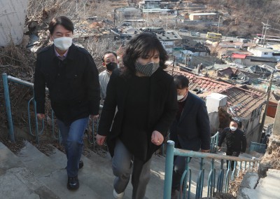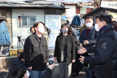 백사마을 재개발 현장서 주민들과 대화 나누는 안철수 예비후보