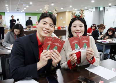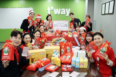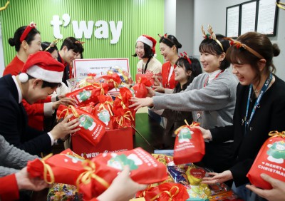 아동·청소년들 위한 선물키트 포장하는 티웨이항공 임직원