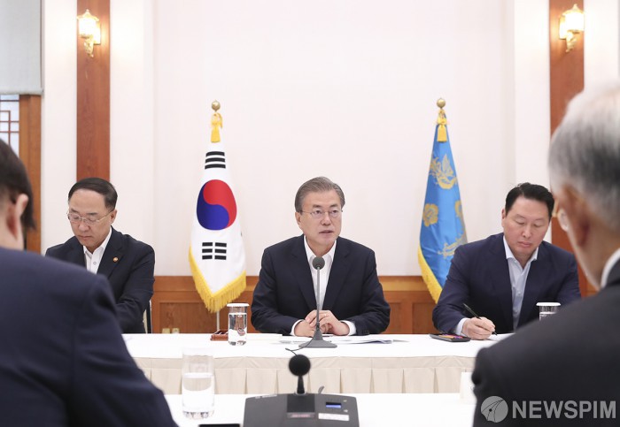 [사진] 경제계 주요 인사 초청 간담회,발언하는 문대통령
