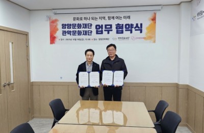 양양문화재단, 관악문화재단과 업무협약 체결 [양양=뉴스핌] 이형섭 기자 = 강원 양양문화재단과 관악문화재단은 10일 '문화예술 발전 및 교류 활성화 협력체계 구축'을 위한 업무협약을 체결했다. 양양문화재단, 관악문화재단과 업무협약 체결.[사진=양양군] 2025.10.10 onemoregive@newspim.com 협약식은 양양문화재단에서 진행되었으며, 양 기관은 지역 주민의 문화 향유 확대를 위해 다양한 협력 사업을 추진하고 지역 문화예술 발전에 기여할 것이라고 다짐했다. 협약의 주요 내용에는 축제 및 문화 사업에 대한 역량 공유, 예술 교육 및 프로그램 운영을 위한 정보 교류, 문화복지 사업 지원을 위한 인적 물적 자원 교류 등이 포함되어 있으며, 이것들이 지역문화 발전에 중요한 계기가 될 것으로 기대하고 있다. 최태섭 양양문화재단 상임이사는 "이번 협약을 통해 양 기관이 보유한 자원과 역량을 나누어 지역 사회의 발전과 상호 교류 협력을 확대해 나가겠다"고 말했다. 소홍삼 관악문화재단 대표이사는 "양양문화재단과의 협약을 계기로 수도권과 강원권이 긴밀하게 협력하여 문화적 다양성과 지속 가능한 지역문화 발전 모델을 함께 만들 수 있기를 바란다"고 말했다. onemoregive@newspim.com 25-10-10 17:11