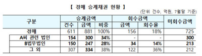 경매주택 '저가 쓸어담기' 뒤 소송 남발…HUG 채권 회수율 하락 [서울=뉴스핌] 정영희 기자 = 저가 낙찰과 과도한 소송 제기로 주택도시보증공사(HUG)가 회수하지 못한 보증금이 계속 쌓이고 있다. 제도 허점을 악용해 회수 기간을 늘리는 악성 채무자에 대한 대책이 필요하다는 분석이 제기됐다. HUG 경매 승계채권 현황 [자료=HUG] ... HUG 주택분양보증 5.5조 줄었다…분양보증사고는 1.7조 증가 HF 전세대출 보증 기준 상향… 경기·인천 빌라 40% 재계약 어려워 ′분양보증 약관 개정′ HUG, 시공사 회생절차 돌입해도 신속 사업 지원